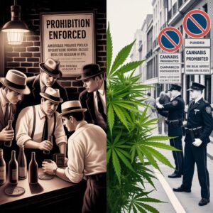 L’interdiction du cannabis en Europe, dans sa forme actuelle, présente de troublantes similitudes avec la prohibition de l’alcool aux États-Unis dans les années 30 : marché noir florissant, produits non contrôlés, profits criminels, criminalisation des usagers plutôt que protection réelle de la santé publique.