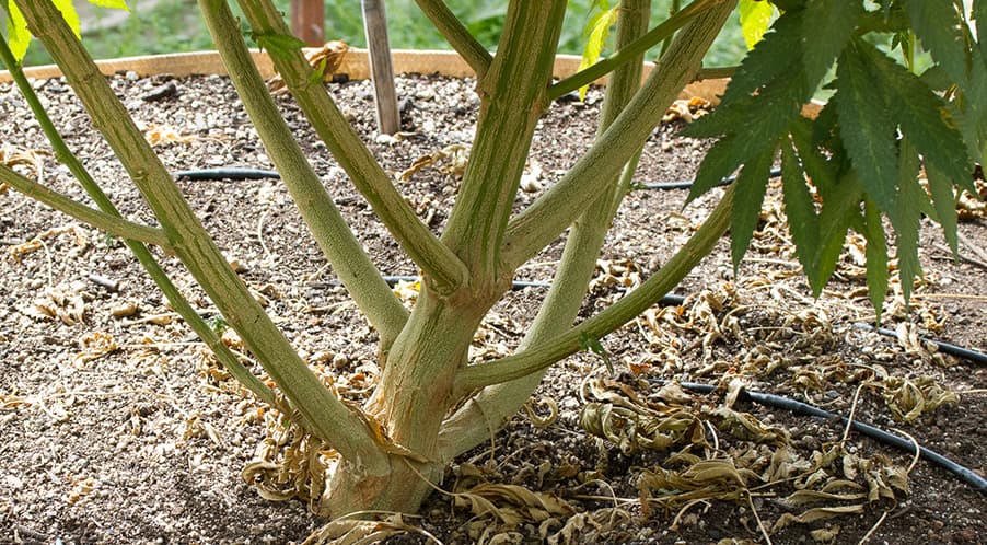 Cependant, il ne s’agit pas ici de couper la tige principale, mais plutôt de pincer fortement la tige entre les doigts, de manière à rompre de manière nette les fibres à l’intérieur sans altérer les membranes externes. Le résultat final nous laisse percevoir une ou des ramifications tombantes dans une première phase, mais ensuite la stimulation naturelle des hormones de croissance de la plante (auxines et cytokinines), produisent normalement une potentielle augmentation du rendement final.